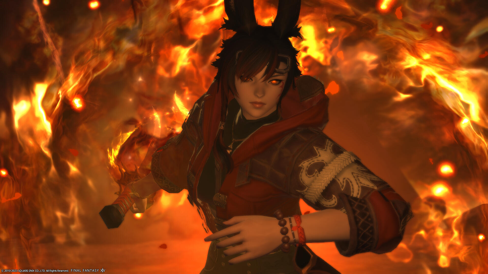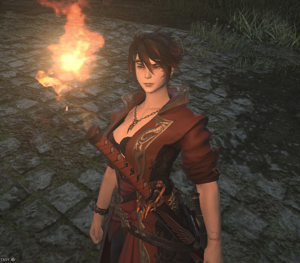 | Burned alive | With no more ship to carry on her crimes at sea, Exi drifted to the shores of Thanalan to continue her dirty deeds. Alas, she was caught in the rampants kidnappings near the Sagolii and Little Ala Mhigo when trying to rob a caravan of its possessions. Taken in by the Amalj'aa, zealot worshippers of Ifrit, Exi was offered as a tribute, tempering her. She was later freed from the Primal's control, but her aether never extinguished itself. |