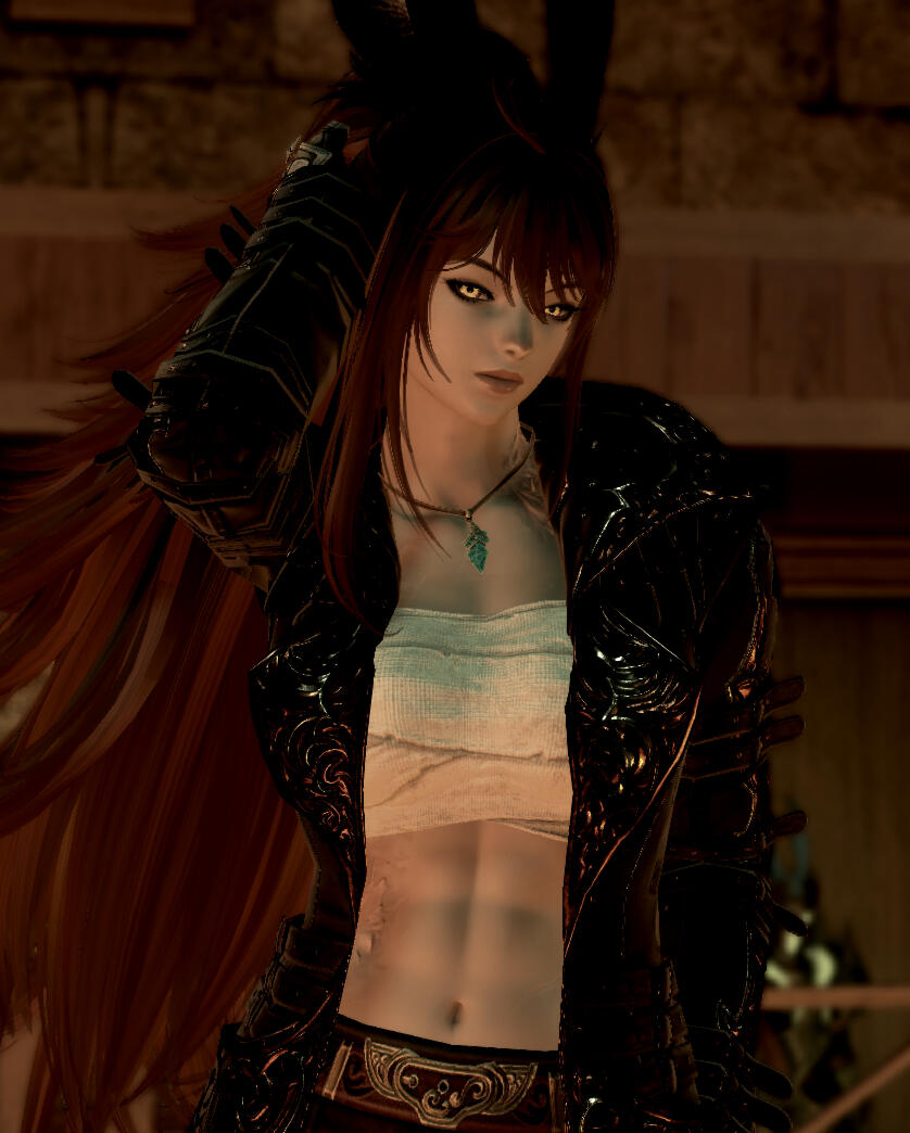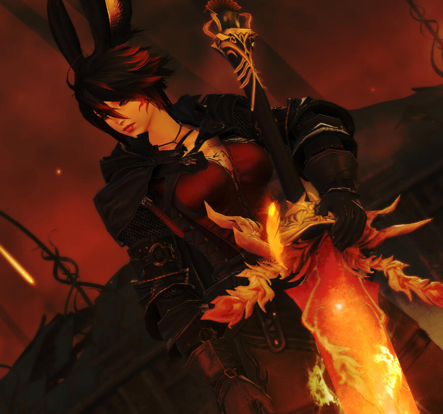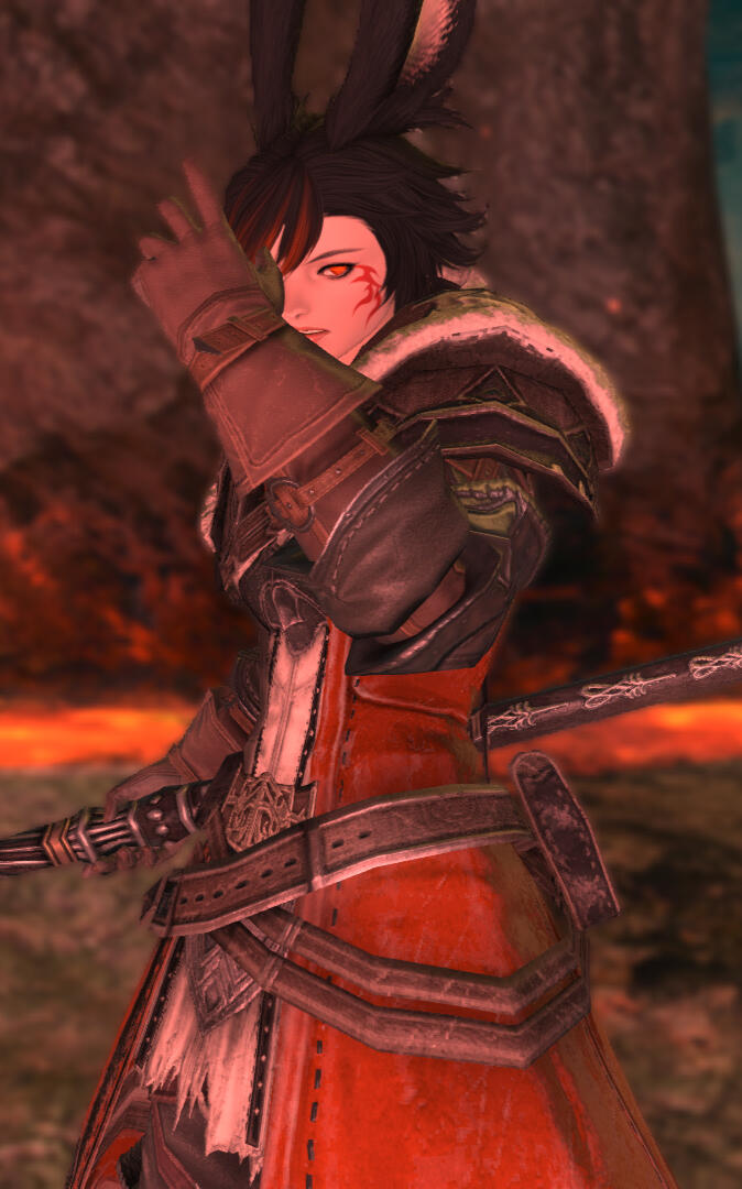 In her times learning how to swing an axe with the Marauders of Limsa Lominsa and the Warriors that roam Eorzea, Exi has gotten in touch with this angered state of mind, allowing herself to push through the pain to keep fighting until injuries become debilitating.