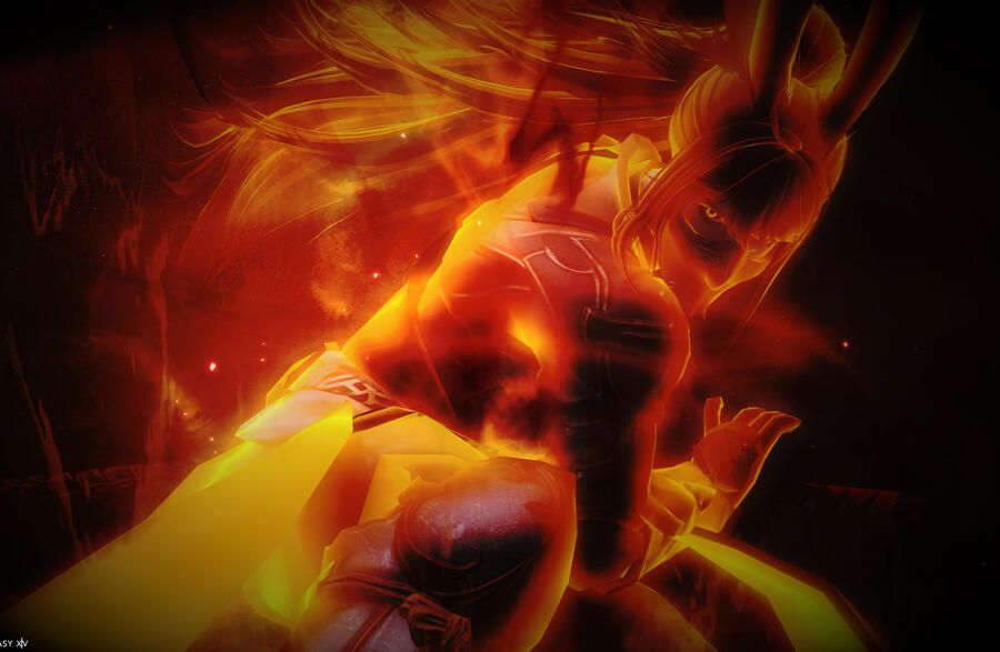 Bright white flames bringing an other-worldly heat onto her blade, channeled by the spirit within. Particularly painful to Voidsents and Nightkins. With enough focus, she can channel it within her spells too.